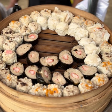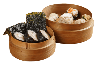 Kombinasi sempurna antara gurihnya dimsum dan lezatnya sushi.